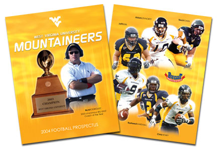 Cover design for a program to assist the media in covering WVU Football during the 2004 pre-season.