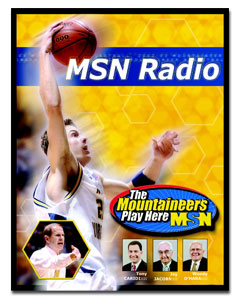 Basketball program ad for a radio show for the Mountaineer Sports Network.