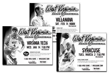 Newpaper ads for the 2003 WVU Men's Basketball home games.